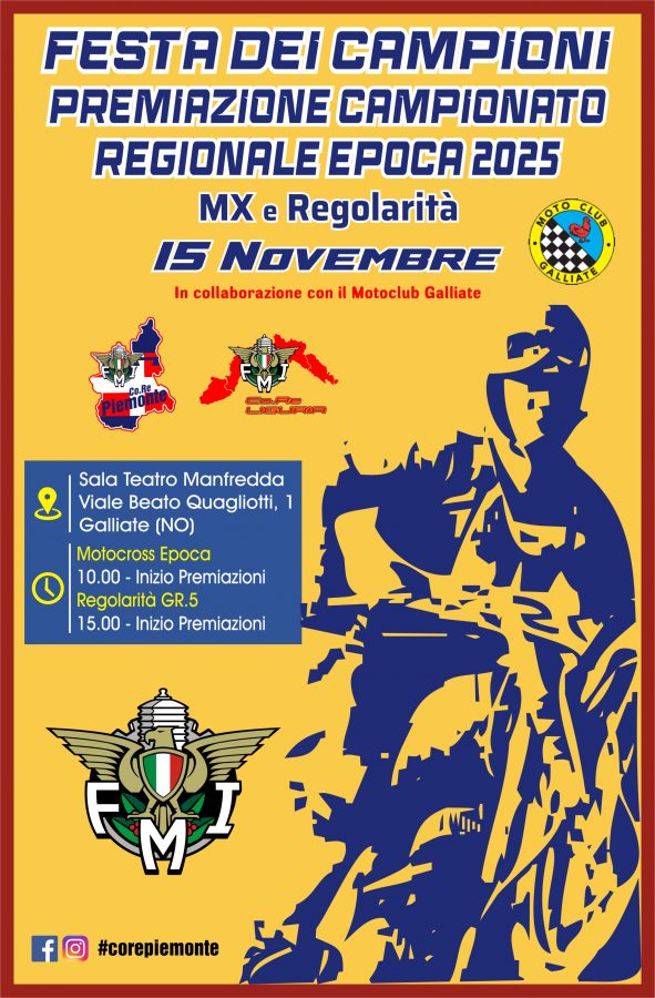 PREMIAZIONE CAMPIONATO REGIONALE EPOCA 2025 MX e REGOLARITA’