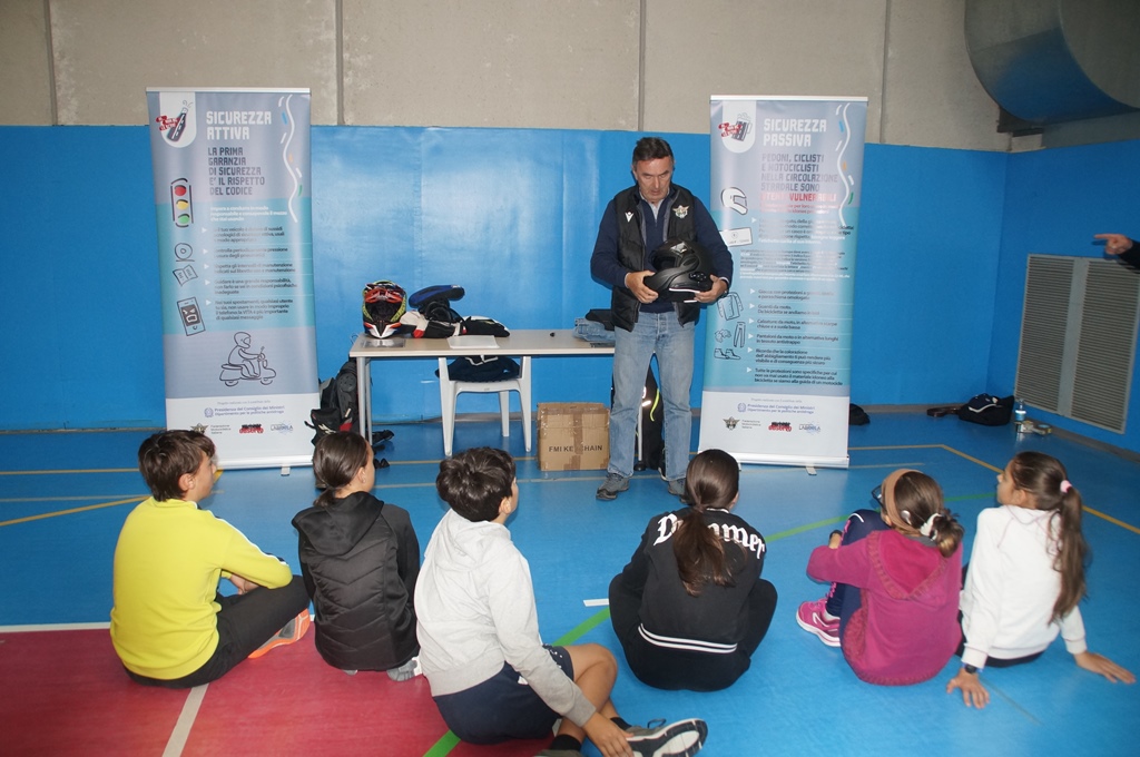 Due incontri, aventi come tema: “piccole ruote crescono” e “Io… non me la bevo”, sono stati riservati agli alunni di alcune classi delle scuole elementari e medie dell’Istituto Comprensivo di Robilante, suddivisi in più gruppi, che si sono dimostrati molto attenti ai temi affrontati ed esposti dagli addetti della FMI, mentre uno, sul tema “in moto in sicurezza in provincia di Cuneo”, è stato dedicato agli adulti.